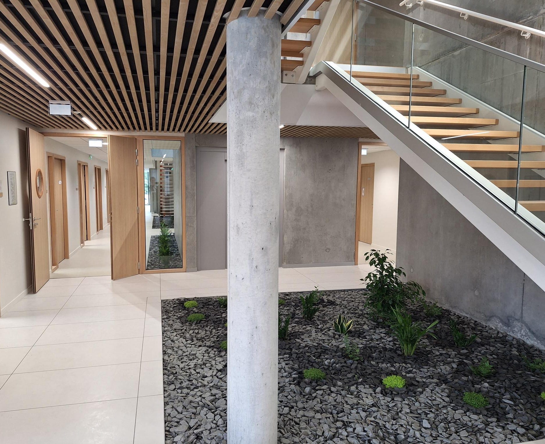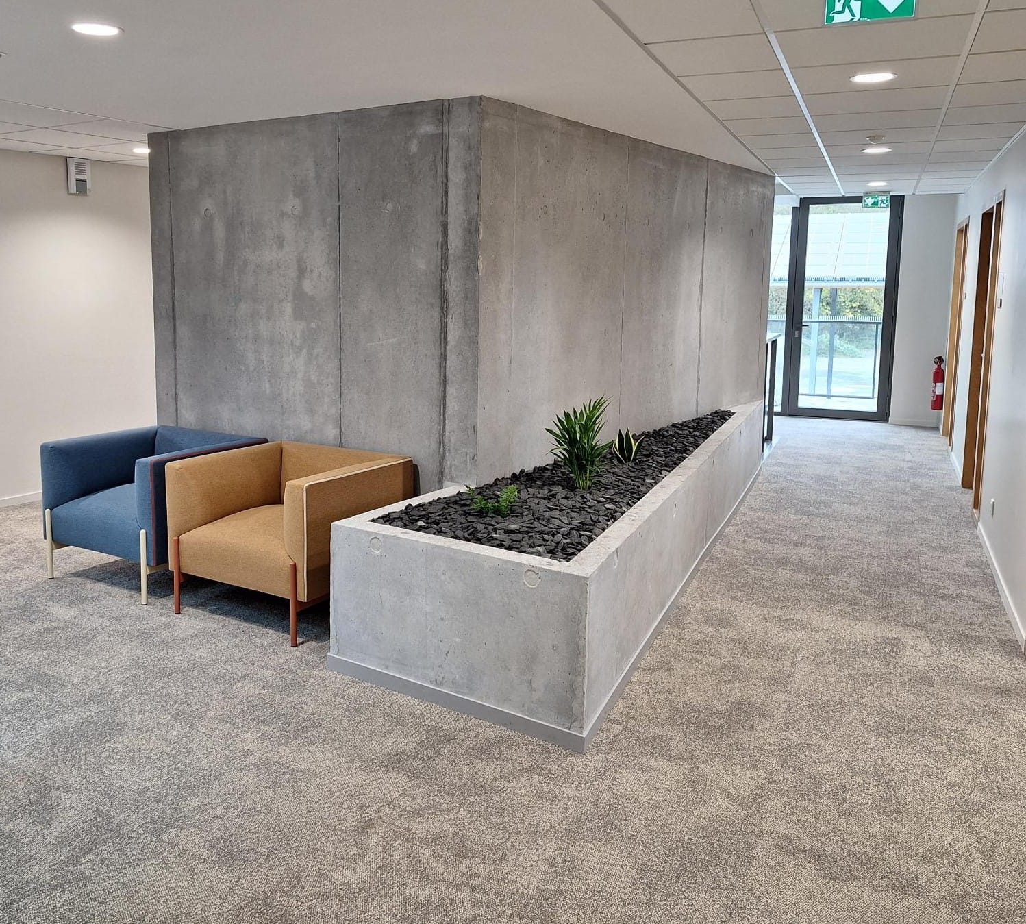 En complément de la peinture, ce projet intègre la pose de revêtements muraux adaptés aux contraintes du bâtiment. Toile de verre, revêtements décoratifs ou solutions techniques spécifiques, chaque matériau a été choisi pour répondre à des exigences précises en matière de résistance, d’esthétique et de longévité.
